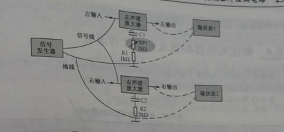立體聲平衡調(diào)整方法:給左右聲道輸入適當(dāng)?shù)南嗤笮〉臏y試信號(一般特定頻率的正弦信號,有信號發(fā)生器提供),如圖2所示,在左、右聲道輸出端分別街上毫伏表,調(diào)整平衡貼片可調(diào)電阻RP1,使兩個聲道輸出信號幅度大小相等。
